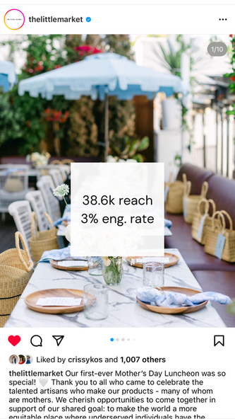 The Little Market is a 501(c)(3) nonprofit organization dedicated to the economic self-sufficiency of women worldwide through dignified income opportunities, founded by Lauren Conrad and Hannah Svkarla in 2012. As Social Media Manager I spearheaded and executed successful growth-focused strategies for each of our social channels, converting engagement into sales and building an active, authentic community.